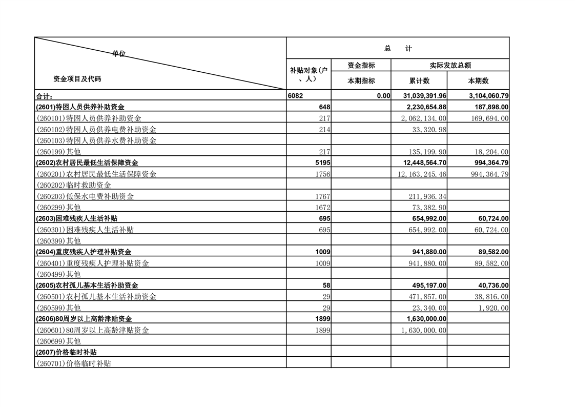 安徽省葛集镇2025年12月份财政惠民惠农补贴资金月报表 |