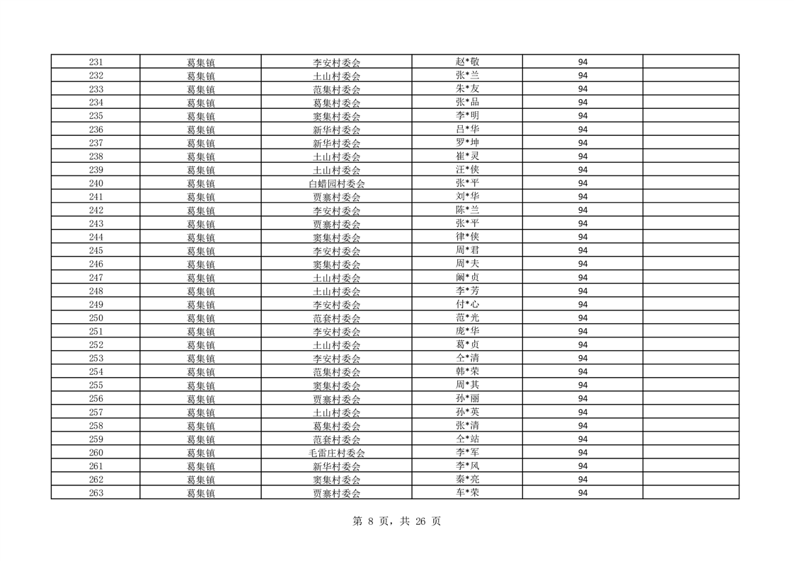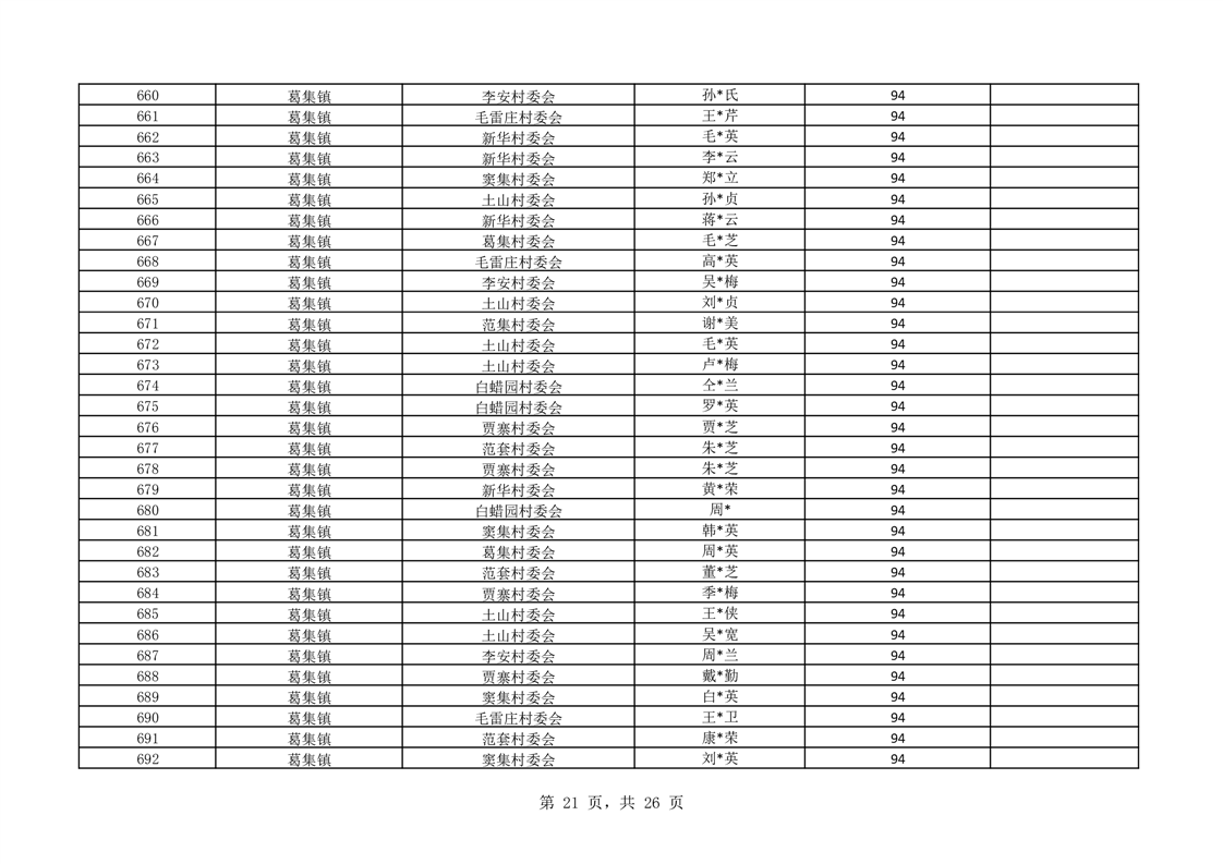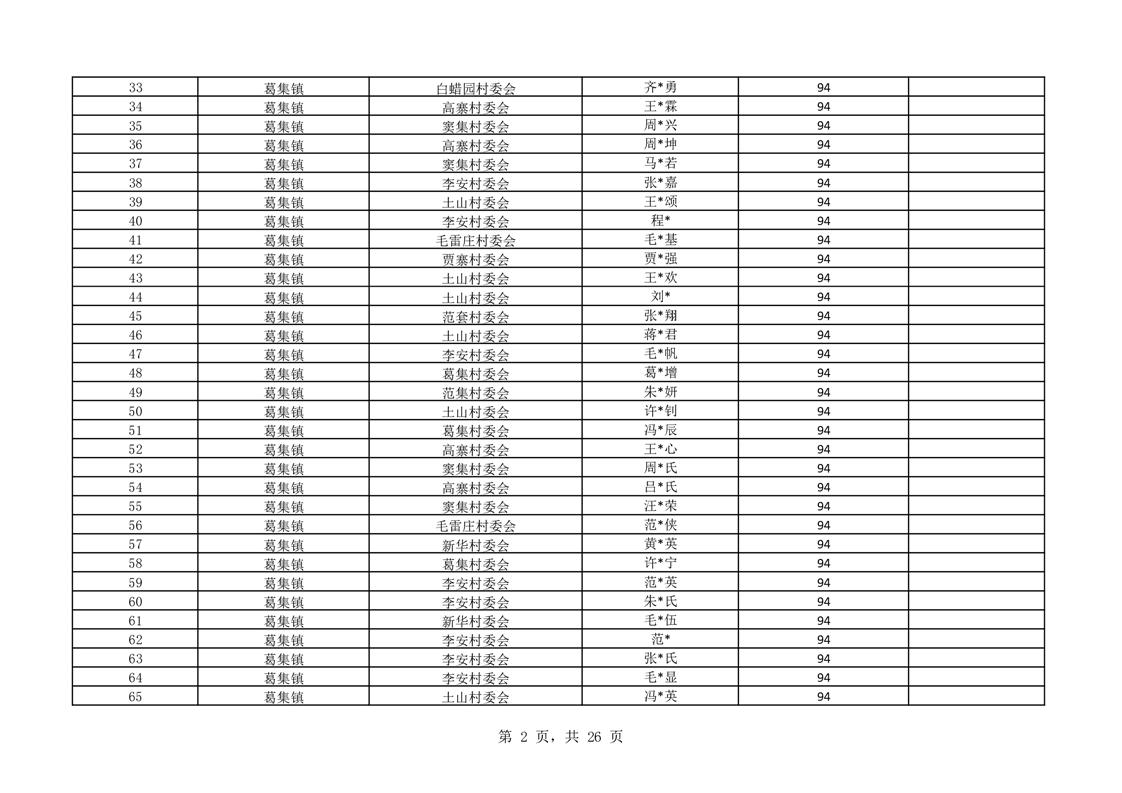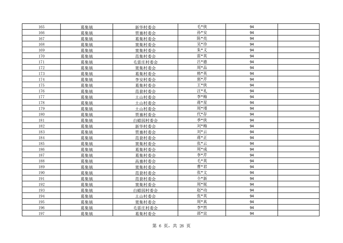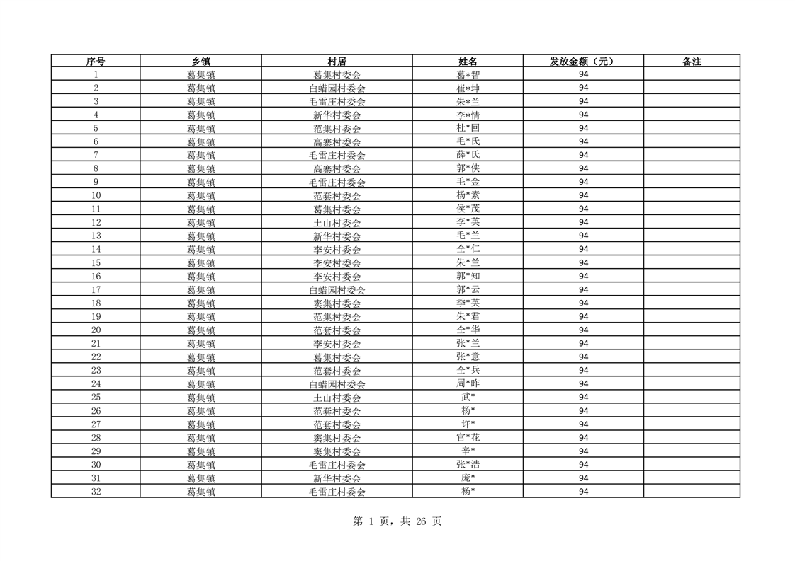 葛集镇2026年2月份困难残疾人生活补贴资金发放花名册 |