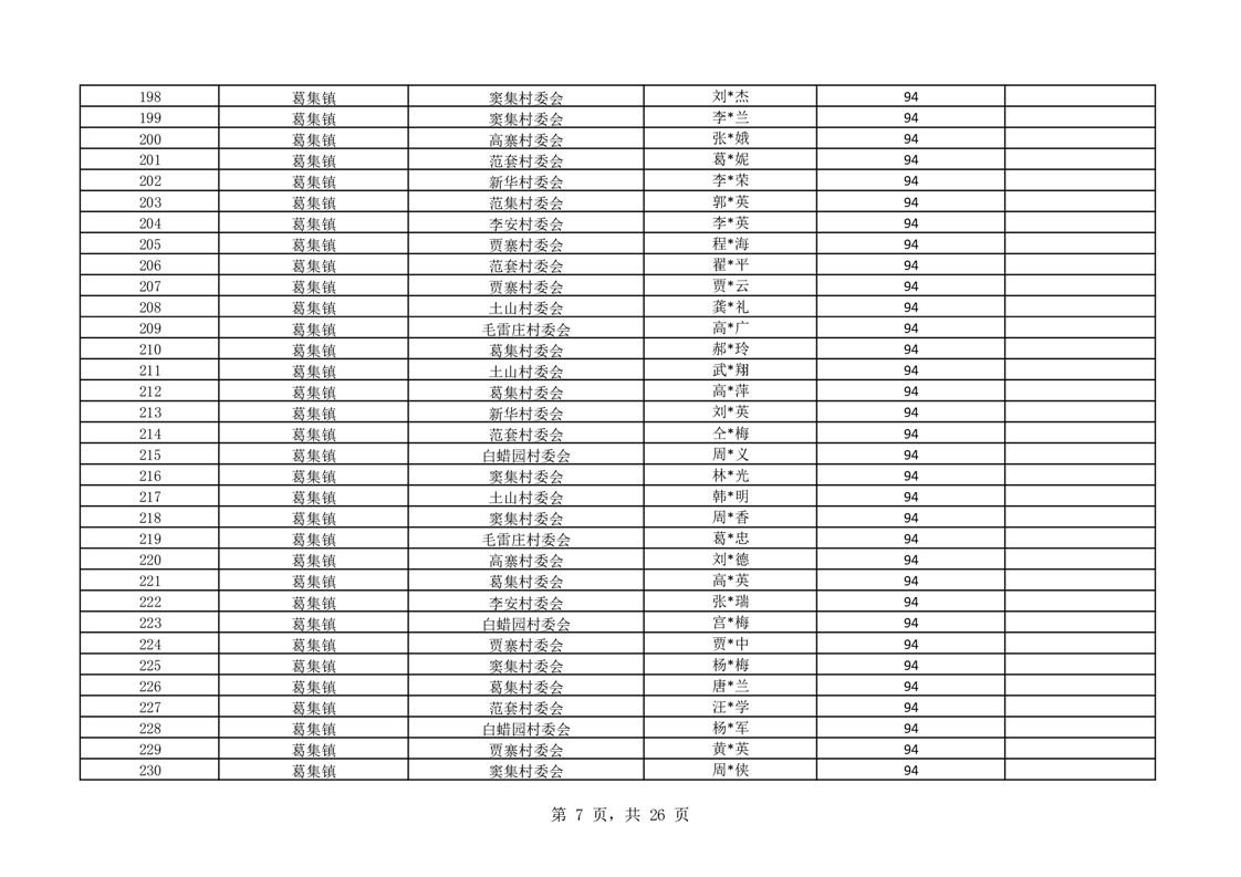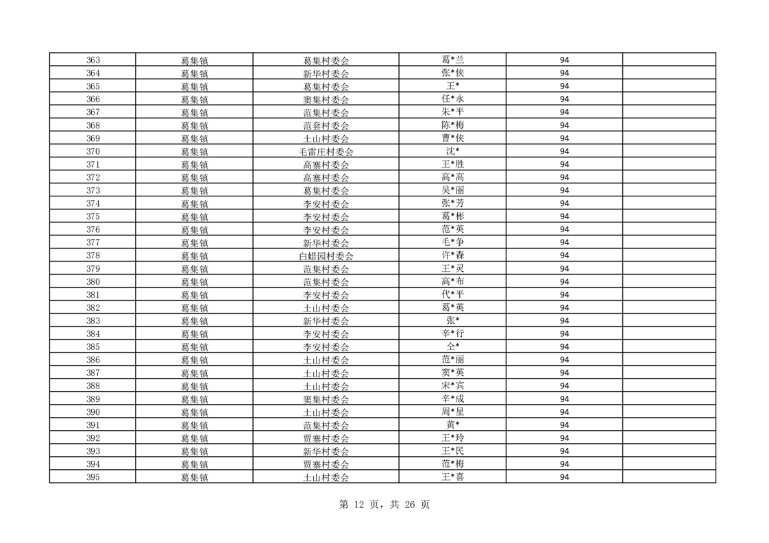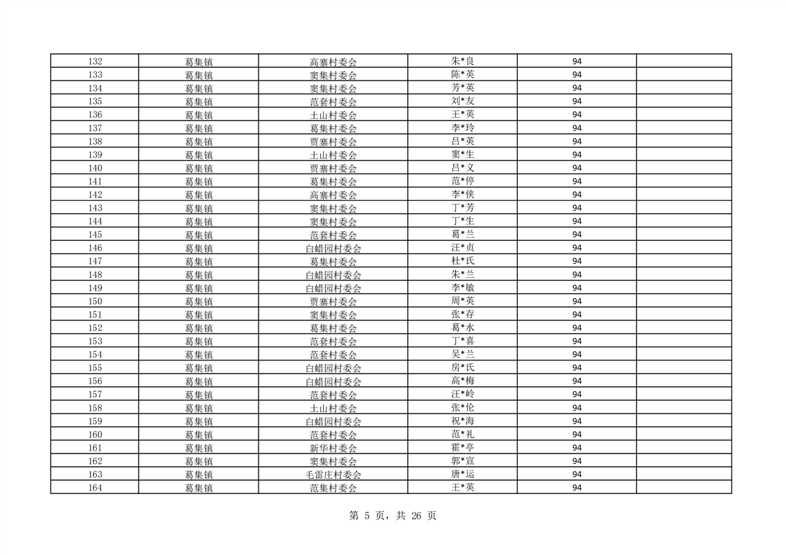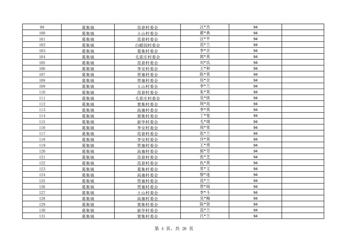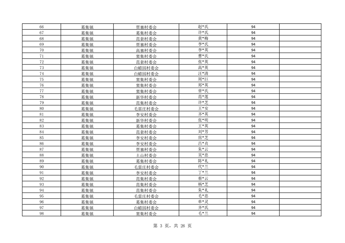 葛集镇2026年2月份困难残疾人生活补贴资金发放花名册 |