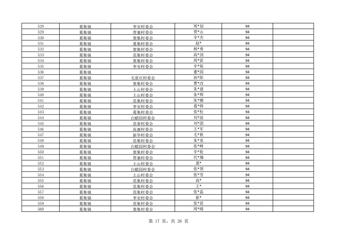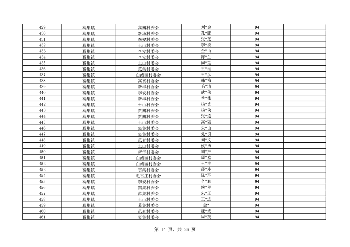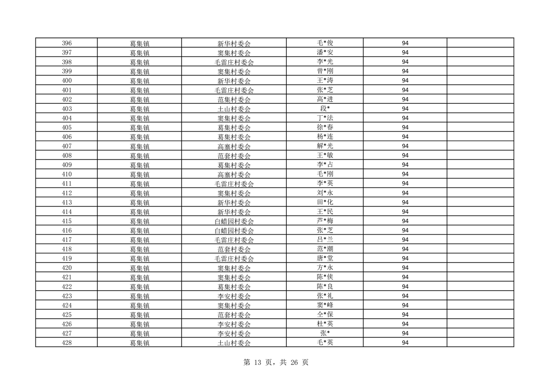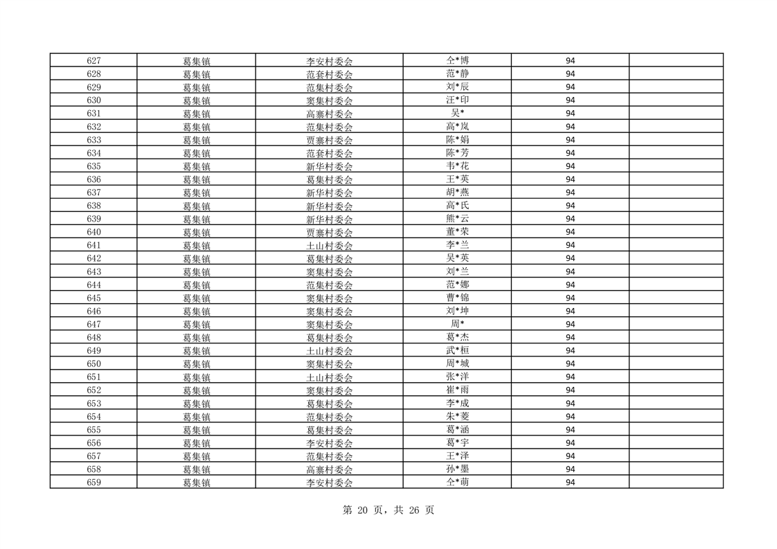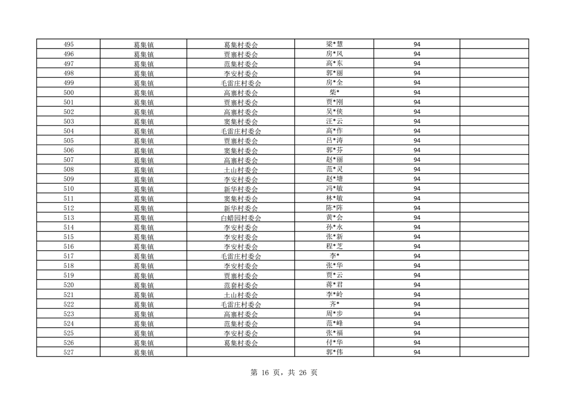 葛集镇2026年2月份困难残疾人生活补贴资金发放花名册 |