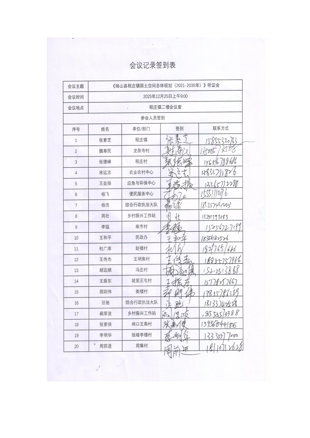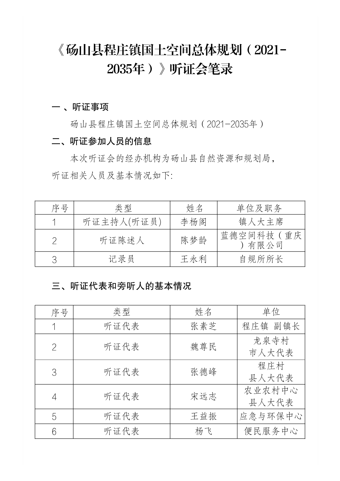 《砀山县程庄镇国土空间总体规划(2021-2035年)》听证会笔录 |
