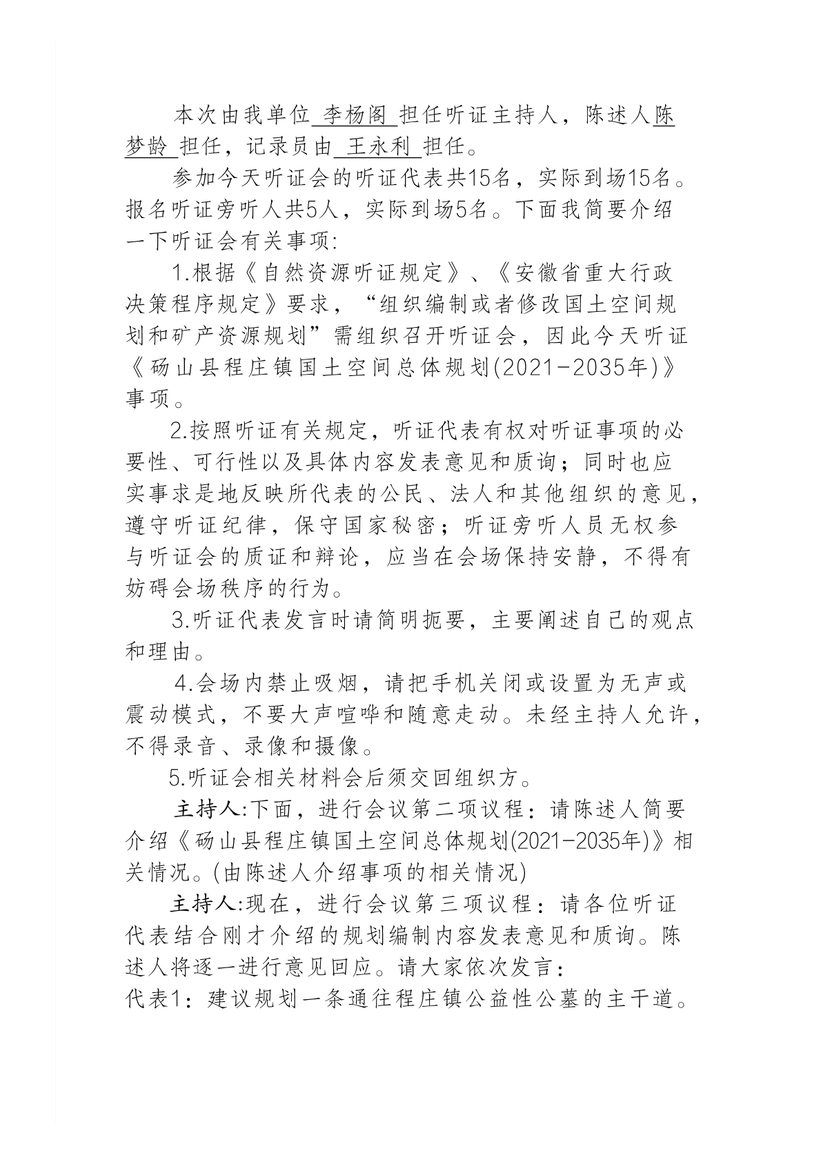 《砀山县程庄镇国土空间总体规划(2021-2035年)》听证会笔录