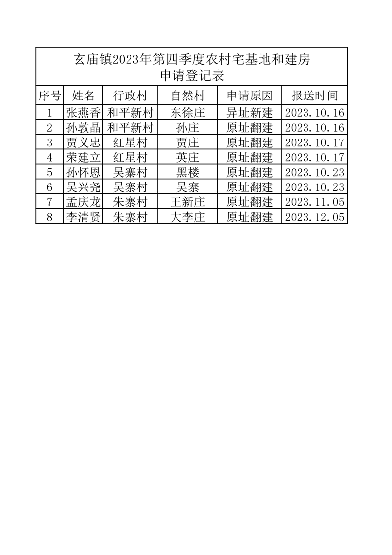 玄庙镇2023年第四季度宅基地审核使用情况 |