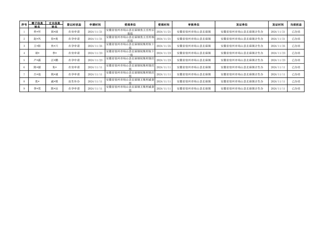 玄庙镇2024年11月《生育登记》登记情况表 |