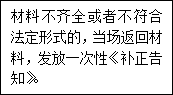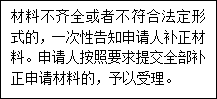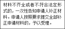 材料齐全、符合法定形式的,出具受理通知书;材料不齐全或者不符合法定形式的,一次性告知需要补正的内容,出具补正材料通知书。 |