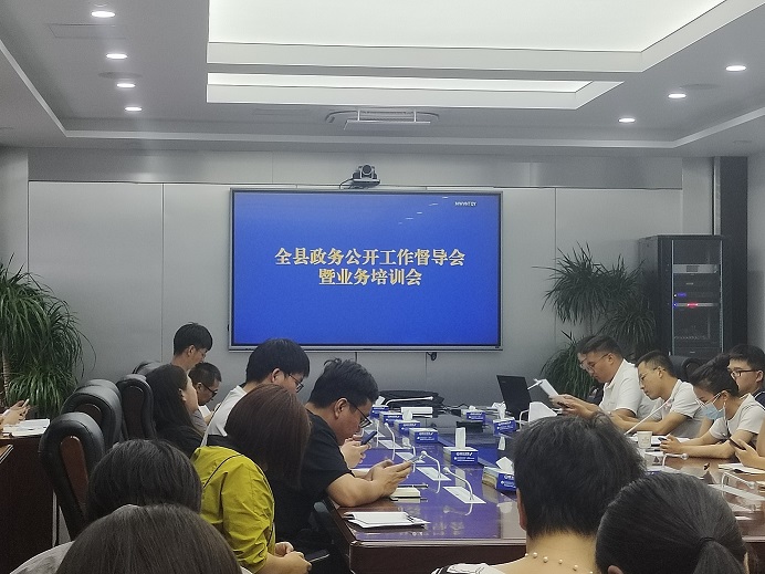 8月3日上午,在政府二楼会议室,全县政务公开工作督导会暨业务培训会召开,县直部门、镇(园区)业务员参加会议。