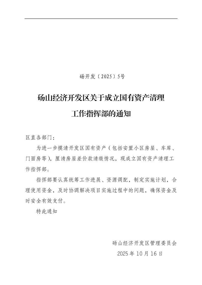 砀山经济开发区关于成立国有资产清理工作指挥部的通知 |