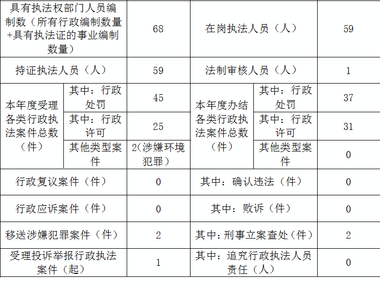宿州市砀山县生态环境分局行政执法情况2025年度统计表