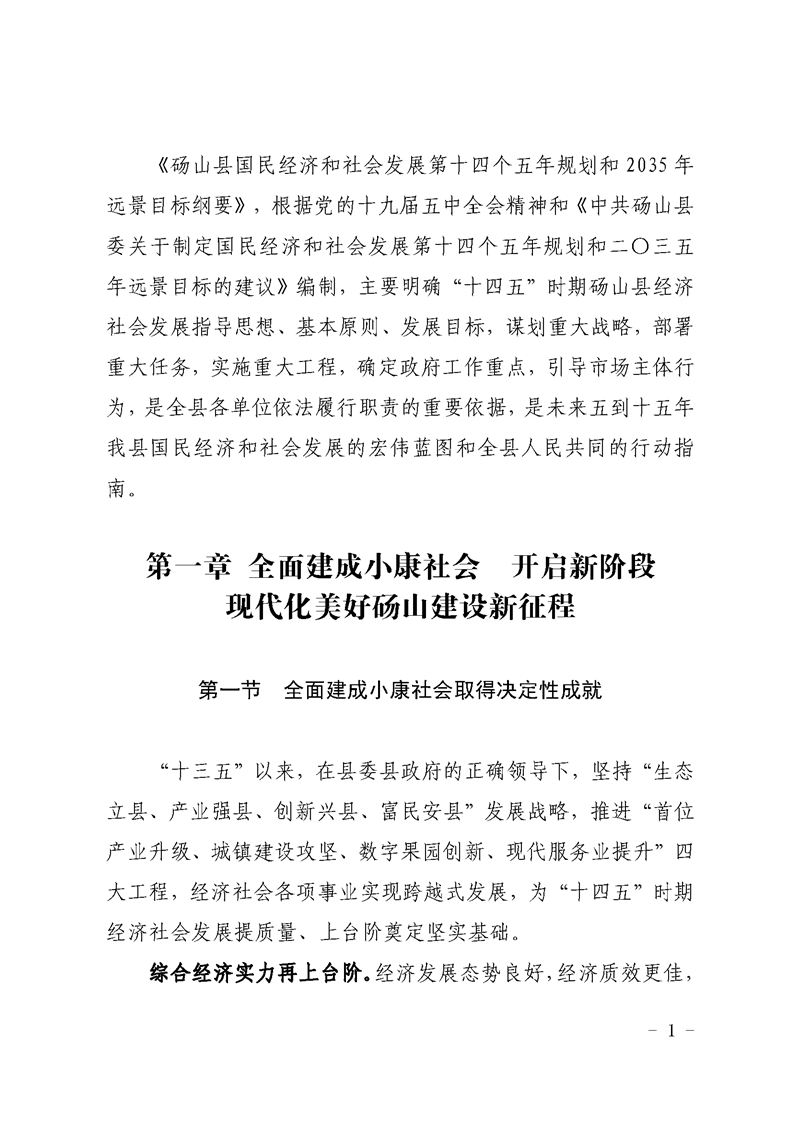 砀山县国民经济和社会发展第十四个五年规划和2035年远景目标纲要 |