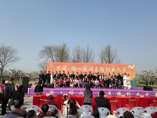 2023年3月27日,中国·砀山梨园直播创业大赛在梨树王景区举行。来自全县的百余名选手同台竞技,在梨树王景区里通过直播电商争相销售农产品,比拼直播销售技能。此次梨园直播创业大赛,通过深度挖掘和培育一大批本地网红直播电商优秀人才,壮大县域主播人才队伍,不断提升直播电商人才队伍的质量,为大力实施乡村振兴战略储备优秀主播人才。