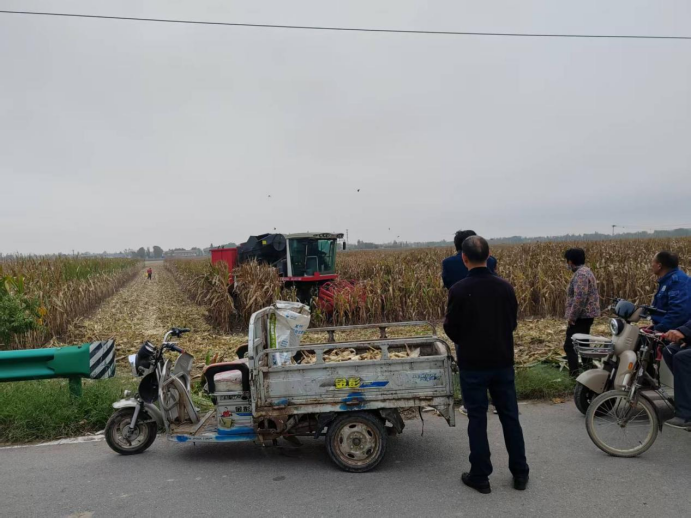 秋分刚过,皖北平原上秋意渐浓。连日阴雨初歇,砀山县周寨镇的田野里便沸腾起来——收割机的轰鸣声此起彼伏,农民们的身影在田间穿梭,一场与天争时的秋粮抢收战正在这片土地上全面展开。