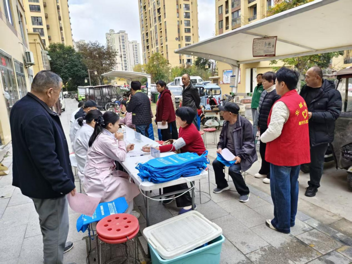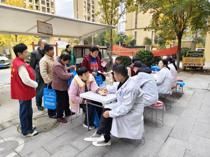 活动当天清晨,医院的内科、外科、骨科、中医科、眼科、口腔科等多个科室的 10 余名骨干医师,携带专业诊疗设备早早抵达现场。社区工作人员提前布置好义诊桌椅、宣传展板,有序引导居民排队签到、测量血压血糖,确保活动高效开展。“阿姨,您先坐,我帮您量个血压,再看看您的体检报告。” 医护人员耐心接待每一位居民,细致询问病史、症状,结合检查结果给出针对性的诊疗建议和健康指导。