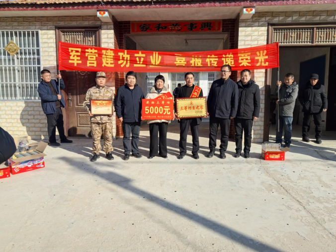 1月9日上午,安徽省砀山县葛集镇高寨村洋溢着喜庆热烈的气氛。砀山县退役军人事务局二级主任科员黄全平、葛集镇党委书记段炼、镇武装部部长王露等在葛集镇退役军人服务站负责人陪同下,共同为荣立个人三等功的现役军人李昊杰家庭送上立功喜报、荣誉牌匾和奖励金,将组织的关怀与褒奖送到功臣家中,彰显对军人奉献的崇高敬意和对军属支持的诚挚感谢。