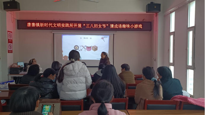 为庆祝第116个“三八”国际妇女节,丰富我镇女性同胞的精神文化生活,3月6日上午,唐寨镇新时代文明实践所联合镇妇联、镇综合文化站开展“三八妇女节”猜成语趣味小游戏。来自全镇的女同志欢聚一堂,在智慧与欢乐的碰撞中共同庆祝属于自己的节日。