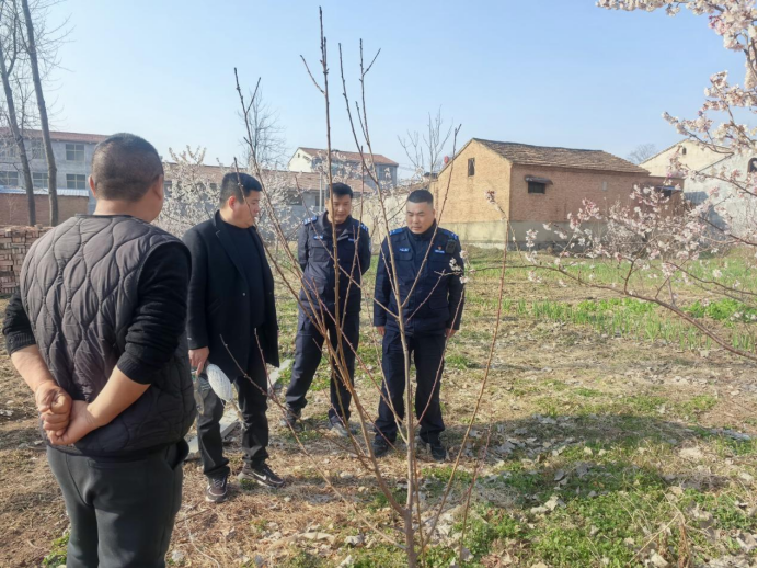 此次纠纷源于40年前生产队分地阶段,彼时梨树地块仅按人口大致划分,未做精准丈量,也无详细台账记录。历经多年,土地边界模糊不清、形状不规则,导致李则群与李雪排、赵长栓等村民的地界归属产生争议,矛盾持续积压,成为群众心中的“烦心事”。为从根源上化解纠纷,砀城镇以党建为引领,指导林屯村组建由包片民警、村组干部、老党员组成的专项调解小分队,秉持“绝不上交”的责任担当,全力推进矛盾化解工作。